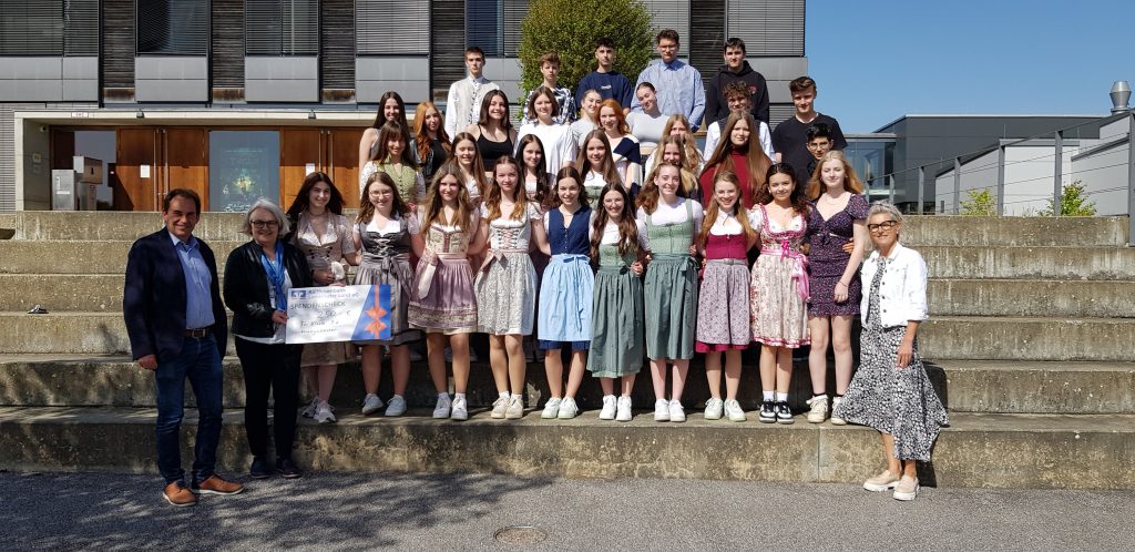Sieglinde Kraus überreichte das Preisgeld an die Schülerinnen und Schüler sowie deren Lehrerin Silke Schöpf.