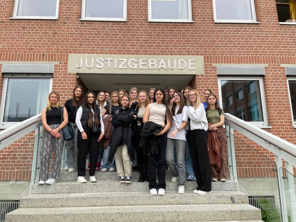Für die 9 B Tag begann mit einem Besuch des Amtsgerichts, wo die Schüler unter anderem eine Jugendstrafrechtsverhandlung miterleben durften. Im Mittelpunkt stand die Anklage eines Heranwachsenden wegen Raubs. Der Angeklagte befindet sich aktuell in Untersuchungshaft und wurde deshalb in Handschellen vorgeführt. Die Verhandlung offenbarte die schwierige Kindheit und die familiären Verhältnisse des Angeklagten.  Aufgrund seiner persönlichen Situation wurde das Jugendstrafrecht herangezogen. Das Gericht entschied, dass er 40 Sozialstunden ableisten muss, es wurde jedoch kein Jugendarrest verhängt, da der Angeklagte eine positive Entwicklung zeigte.