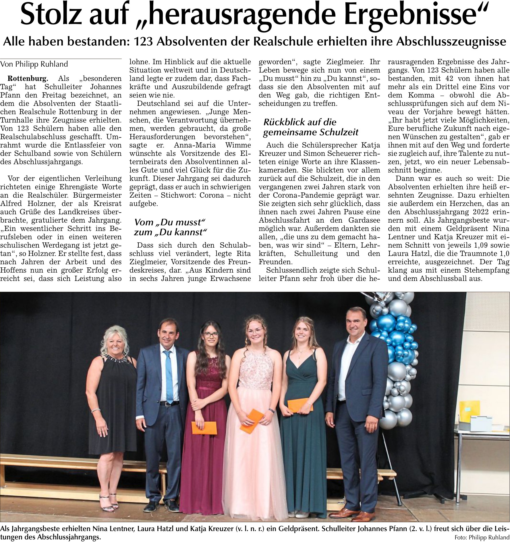 16:00 Uhr: Entlassfeier mit Zeugnisübergabe (Turnhalle RS Rottenburg)
