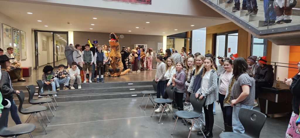 Am 14. Februar verwandelte sich die Aula unserer Realschule in ein buntes Faschingsparadies, als die 5. und 6. Klassen zur großen Faschingsparty einluden. Die Vorfreude war riesig, und die Schüler kamen in den kreativsten und lustigsten Kostümen, die man sich vorstellen kann.