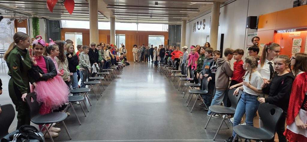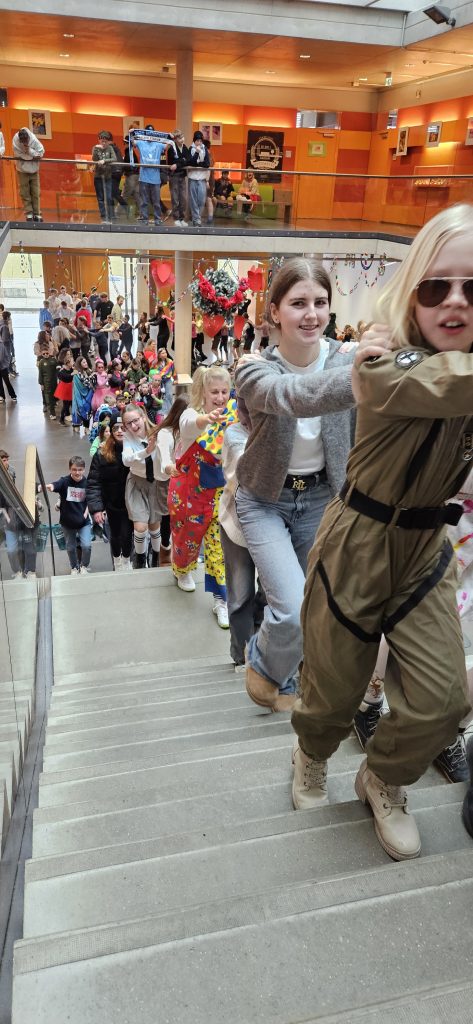 Nach der Kostümprämierung feierten alle noch ausgelassen in der Aula. Eine große Polonaise durchs Schulhaus war der krönende Abschluss der gelungenen Feier.