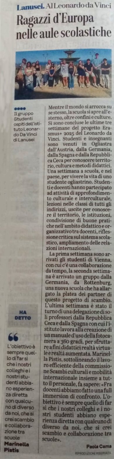 Vom 21. bis 27. September 2025 durften 15 Schülerinnen und Schüler unserer Schule gemeinsam mit fünf Lehrkräften im Rahmen des Erasmus+ Projekts nach Sardinien reisen. Ziel der Fahrt war es, Einblicke in das italienische Schulsystem zu gewinnen, die Sprache und die Kultur Sardiniens kennenzulernen.