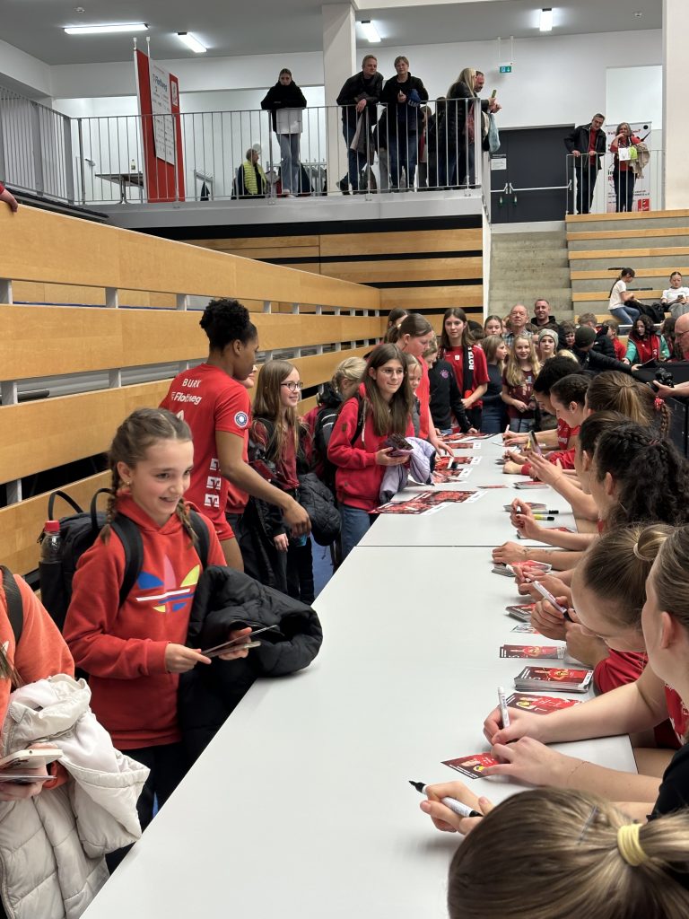 Das Spiel, das die Schülerinnen und Schüler erwartete, versprach Spannung: Die Roten Raben Vilsbiburg trafen auf die Bayervolleys aus Leverkusen, den Tabellenzweiten gegen den Tabellenvierten. Die Roten Raben spielten ein großartiges Match und sicherten sich schließlich überlegen mit einem klaren 3:0-Sieg den verdienten Erfolg. Das abschließende Highlight war die Autogrammstunde mit den Spielerinnen, bei der es sich viele Schüler nicht nehmen ließen, Selfies mit ihren Lieblingsspielerinnen zu ergattern.