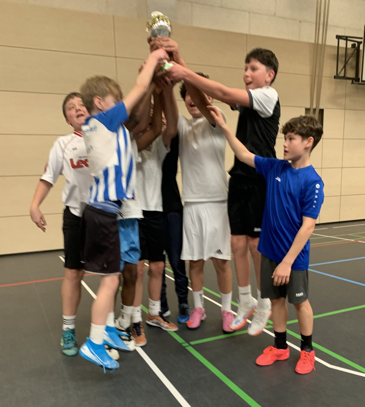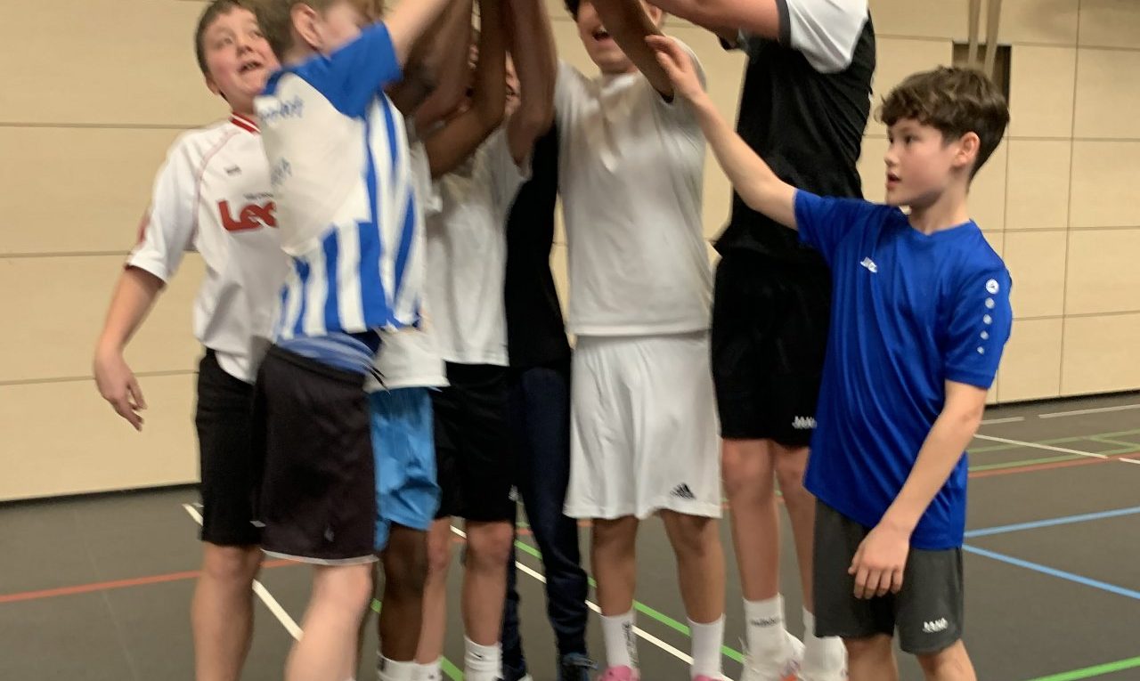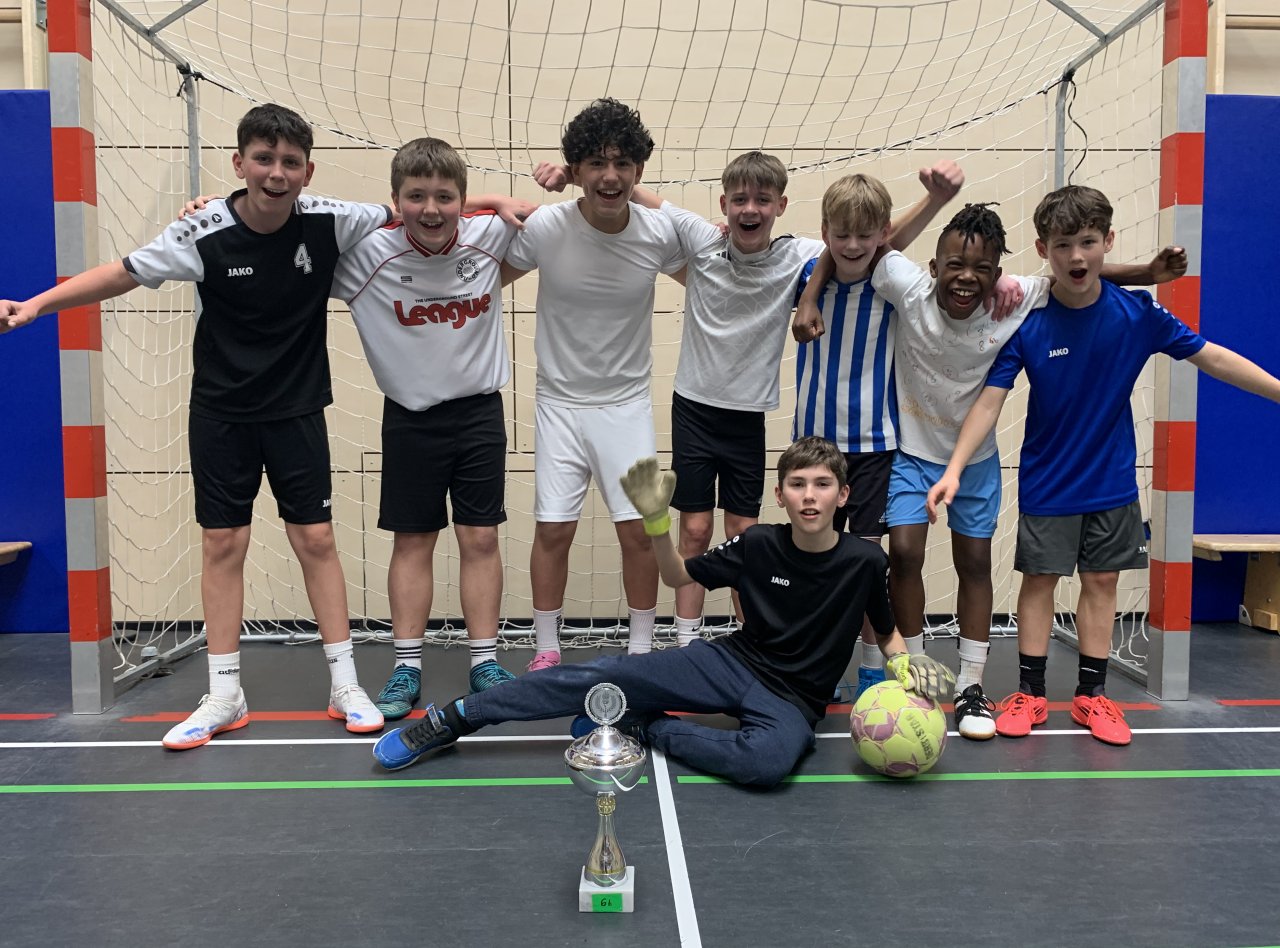 Bei dem Auftaktturnier der diesjährigen Fußball-Hallenrunde setzte sich in einem spannenden Finale die Klasse 6b gegen die 5e (Sieger der 5. Jahrgangsstufe) durch. Bis zur letzten Minute kämpften beide Mannschaften mit allen technischen und taktischen Mitteln, doch ein Tor wollte und wollte nicht fallen. Als schon jeder mit dem Elfmeterschießen rechnete, erlöste sich die 6b mit einem Tor in letzter Sekunde und belohnte sich so mit dem Siegerpokal des Unterstufenmeisters. Weiter, immer weiter … denn damit sind die Jungs für die Mittelstufenmeisterschaft qualifiziert.