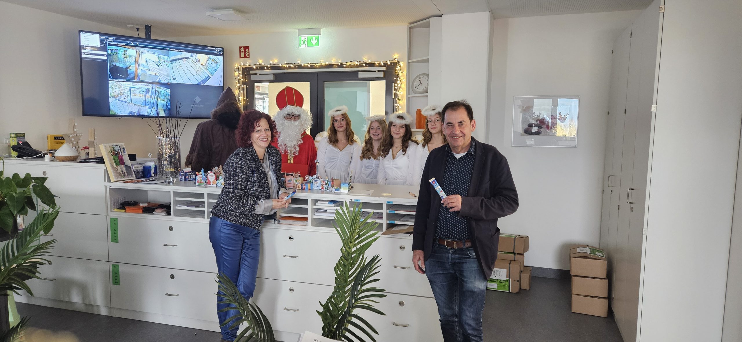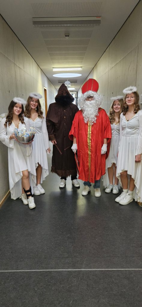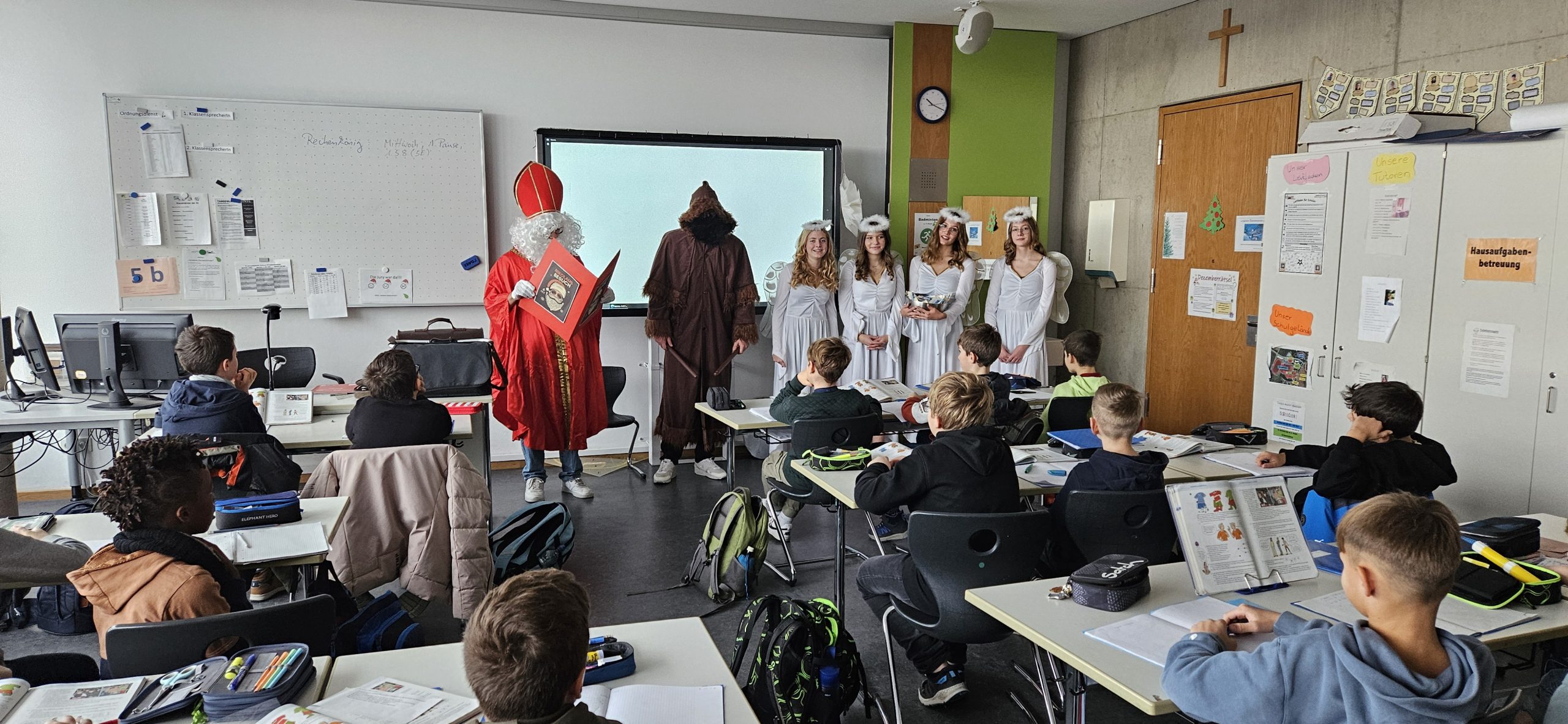 Am 6. Dezember erlebten die Schülerinnen und Schüler der 5. Klassen der Realschule Rottenburg einen besonderen Moment: Der Nikolaus stattete ihnen zusammen mit seinem Krampus und seinen Engeln einen Besuch ab.