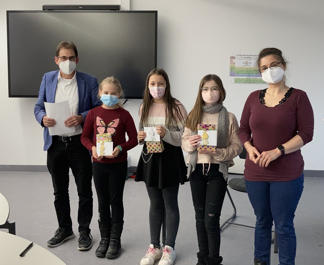 Nachdem Emma Offenbeck, Klasse 6 a, bereits den Schulentscheid der 6. Jahrgangsstufe gewann, holte sie sich nun auch den Sieg im Vorlesewettbewerb der Offenen Ganztagsschule und setzte sich gegen die Zweitplatzierte Josefa Pichlmeier sowie die Drittplatzierte Katharina Horsche, beide aus der Klasse 5 b, durch. Insgesamt 12 Schülerinnen und Schüler der 5. bis 8. Jahrgangsstufe traten mit Textpassagen aus selbst ausgewählten Büchern an und nahmen ausnahmslos mit viel Lesefreude und Engagement an dem Wettbewerb teil. Die Jury bestand aus Herrn Realschuldirektor Johannes Pfann, den Betreuerinnen Berenike Klunker und Rosi Zellner sowie Fabian Krein aus der Klasse 10 c als Vertreter der Schülerschaft. Neben einem kleinen Präsent für alle Teilnehmer erhielten die Gewinnerinnen jeweils einen Drogeriemarkt-Gutschein.