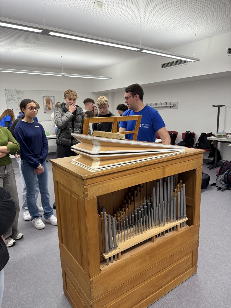 Beim Orgelbauer staunten sie nicht schlecht, dass da wirklich eine echte Orgel im Klassenzimmer stand und mit welch unterschiedlichen Materialien (Holz, Leder, Metall) umgegangen werden muss. Nach der Ausbildung sind diese Gesellen deshalb sehr gefragt.