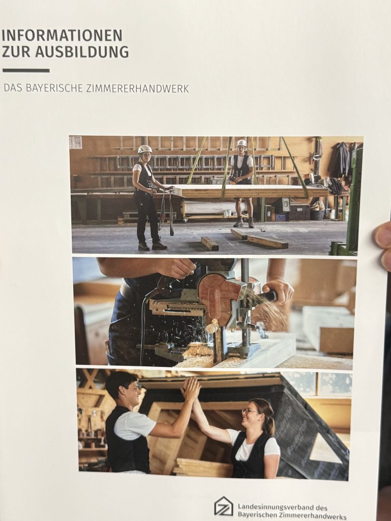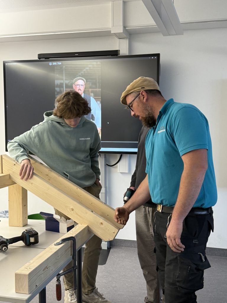 „In der Zimmerei“ durften die Jungen und Mädchen anhand eines Bauplanes im Team Dachstühle „zusammenzimmern“. Mit technischen Hilfsmitteln und effizientem Einsatz der eigenen Kraft ist dieser Beruf auf für Mädchen kein No-go mehr.