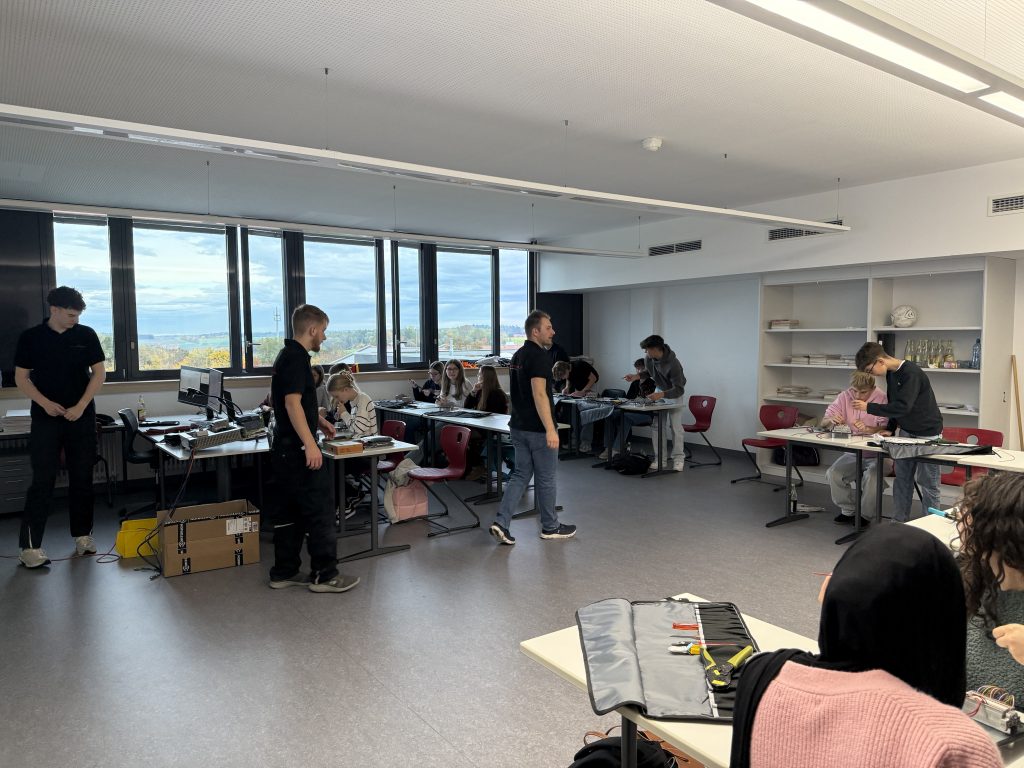 Obwohl gleich zwei Elektrobetriebe vor Ort waren, waren deren Mitmachstationen keinesfalls gleich. Der Beruf des Elektronikers ist sehr vielfältig: Möchte man in die Richtung Gebäudetechnik oder eher Automatisierung? Hierfür sind Veranstaltungen wie unser Tag des Handwerks ideal, um genau diese gewissen Unterschiede herauszufinden, bevor man sich auf ein Praktikum festlegt.