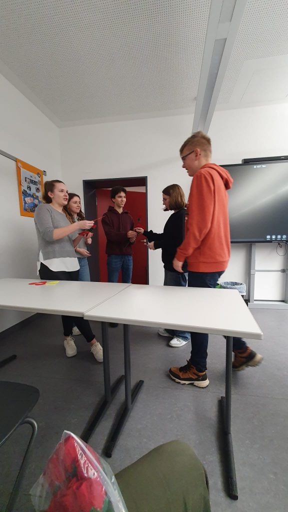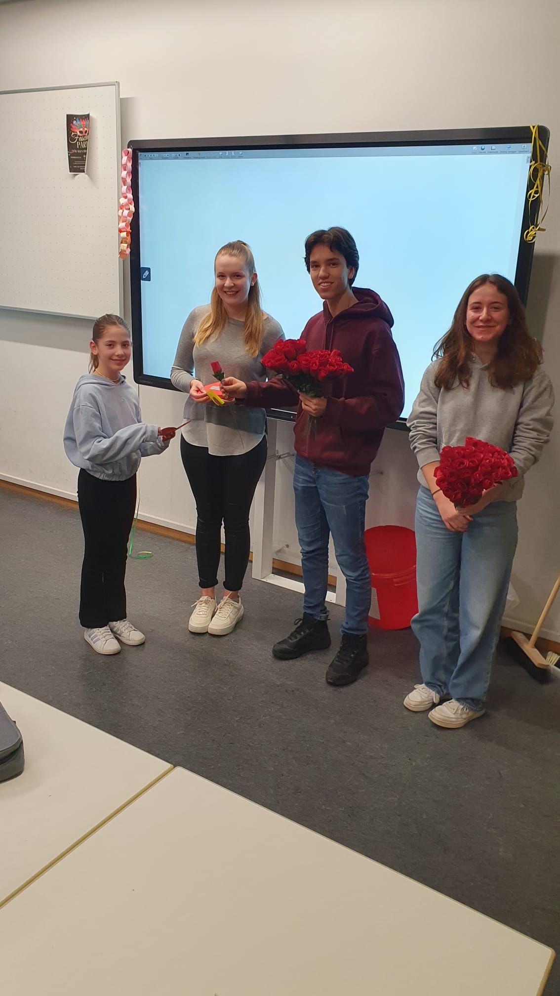 So wurden viele „Liebesbotschaften“ in verschiedene Klassen gebracht. Unser Klassiker, einen Valentinsgruß in Herzkartenform mit Rose zu verschenken, ließ das ein oder andere Gesicht in den Klassen – und auch im Lehrerzimmer freudig strahlen. Wer hat mir eine solche Liebesbotschaft zukommen lassen? Nach dem Öffnen der Herzbotschaft war es jedoch nicht jedem klar, wer an sie/ihn