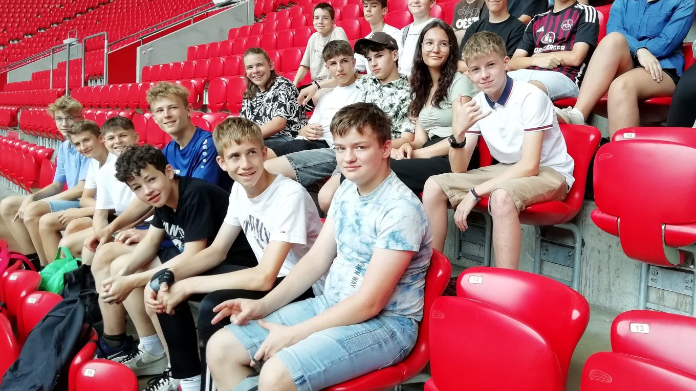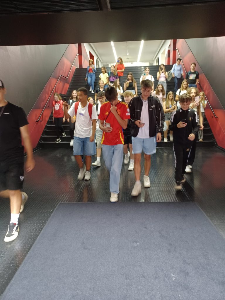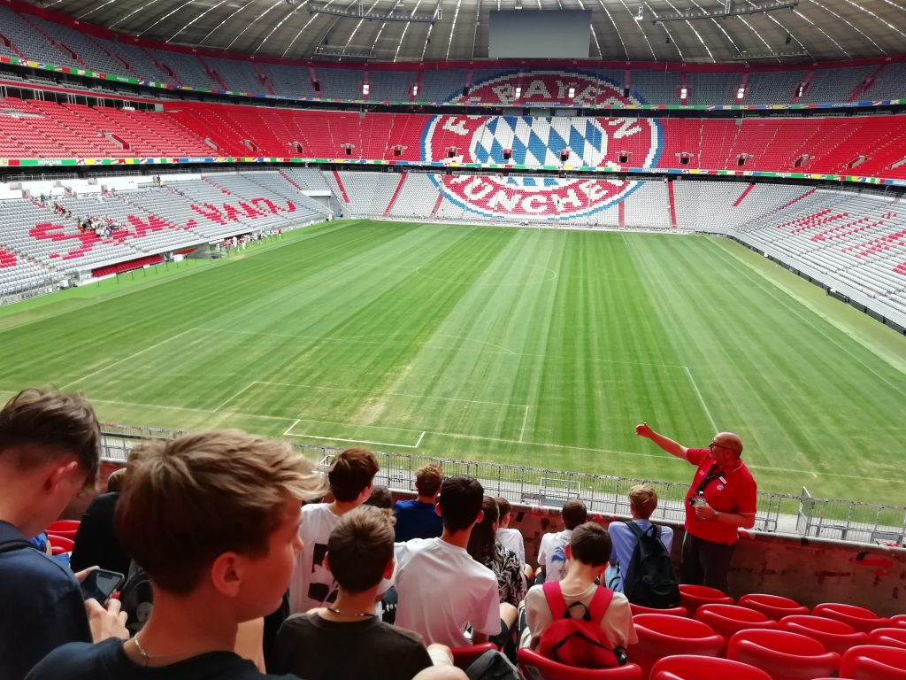 Am Nachmittag begaben sich die Achtklässler nach Fröttmaning und nahmen wiederum in Gruppen aufgeteilt an Führungen durch die Allianz-Arena teil.